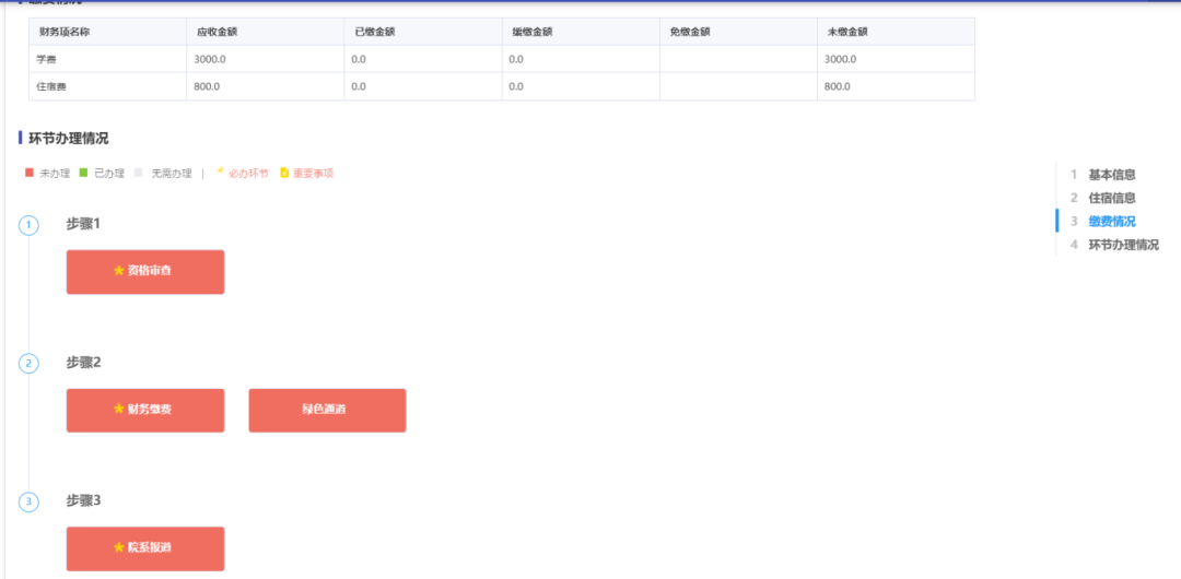 8、学生点击报到单环节,可进入报到单页面查看自己的个人信息,缴费信息等内容,学生现场报到时,可通过报到单查看报到流程及已完成环节,让报到信息实时可查,如下图所示: