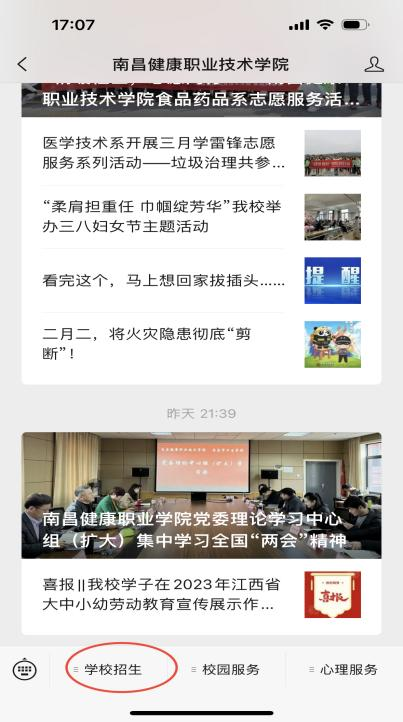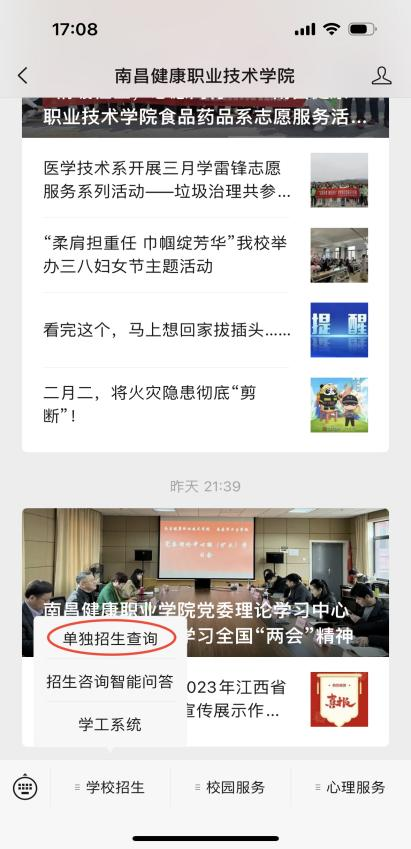(2)请考生用微信搜索公众号“南昌健康职业技术学院”--点击“学校招生”--点击“单独招生查询”--识别图中二维码--输入考生号、姓名及身份证后六位号码(尾号为X请大写)登陆系统--点击“下载准考证”。(见下图)