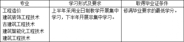 普通高中和中职学生毕业生,基本学制3年。初中起点同等学历毕业生,基本学制5年,每取得一项“1+X”职业技能等级证书可以缩减1年学制,最高缩减2年。严格执行集中学习每学年不低于360学时,实践实习每学年不低于400学时,理论和实践教学比例不低于1:1,远程教育学时不高于理论教学总时50%的教学管理标准。人才培养方式见下表: