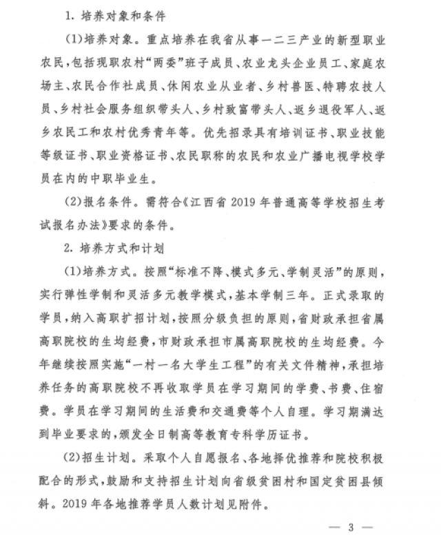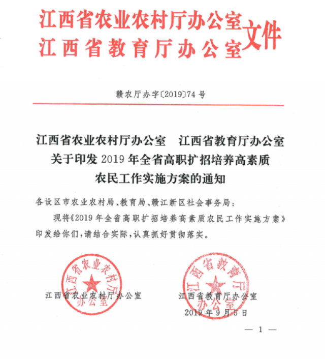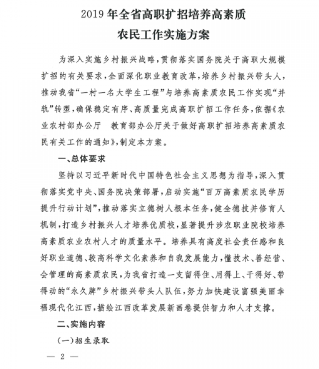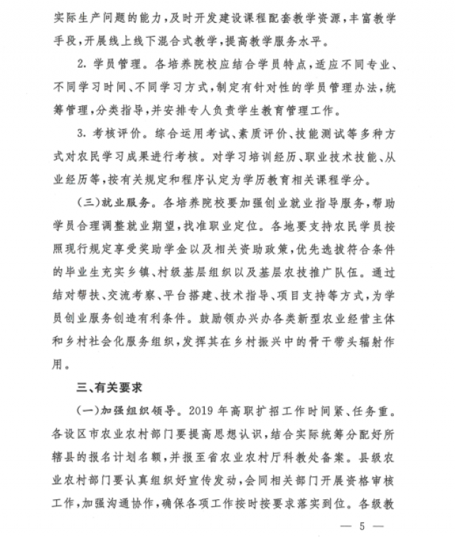 关于印发2019年全省高职扩招培养高素质农民工作实施方案的通知