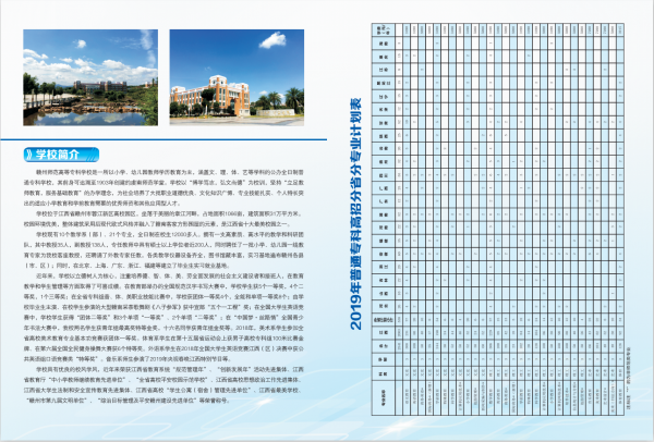 赣州师范高等专科学校是经江西省人民政府批准、国家教育部备案同意设立的一所专科层次公办普通高等院校。学校招收参加全国普通高考的学生,招生性质属国家计划内统招。