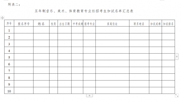 附表二:五年制音乐、美术、体育教育专业社招考生加试名单汇总表