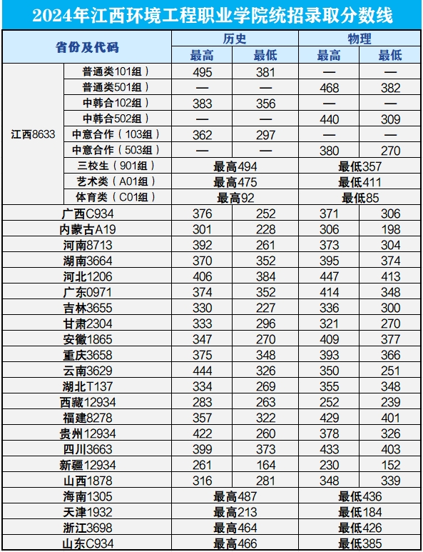 2024年江西环境工程职业学院统招专科录取分数线