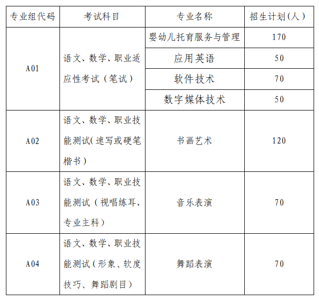 2.如出现考生总成绩同分,则以职业技能测试(职业适应性考试)、语文、数学成绩顺序高者优先录取。如三门成绩都同分的情况下,按小题顺序高者优先录取。