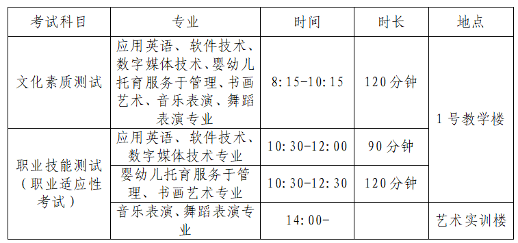 分为“文化素质考试”和“职业技能测试(职业适应性考试)”两部分,总分450分。其中语文100分、数学100分、职业技能测试(职业适应性考试)250分。