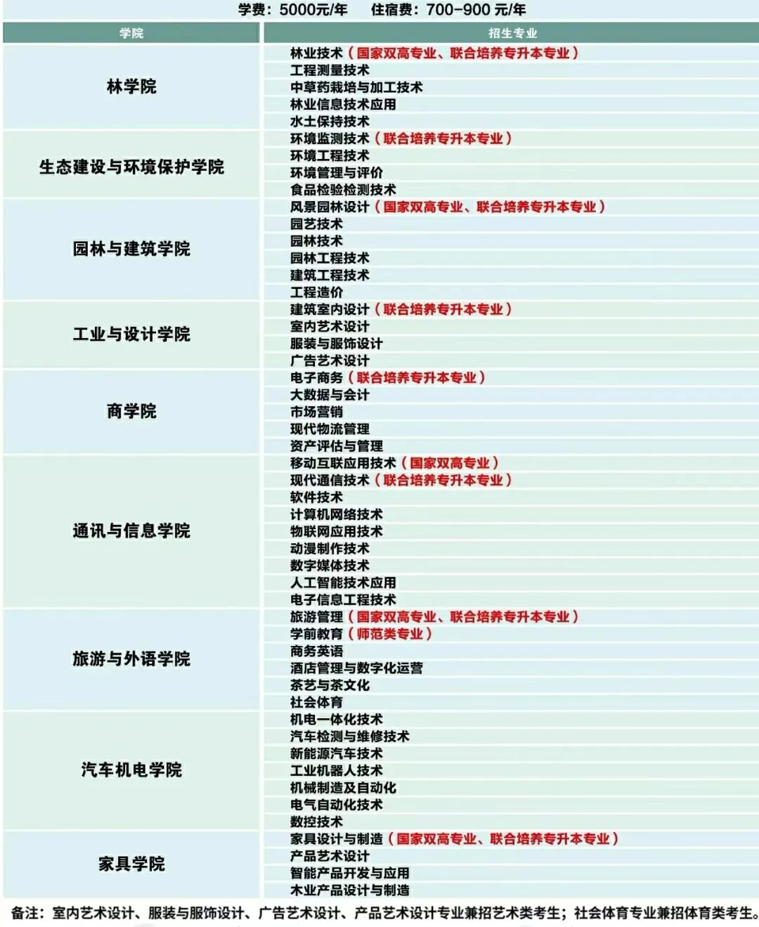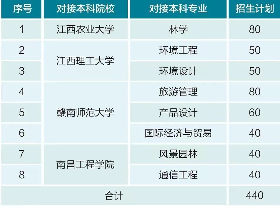 学院遴选旅游管理、风景园林设计、林业技术、环境监测技术、家具设计与制造、现代通信技术、建筑室内设计、电子商务8个专业,联合江西农业大学、江西理工大学、赣南师范大学、南昌工程学院等本科院校开展(3+2)联合培养专升本教育。 联合培养专升本学生由本科院校和我院共同培养,在我院完成3年专科阶段学习,第三年通过专升本考试合格后继续在我院完成2年本科阶段学习,修完规定课程,成绩合格,由本科院校颁发全日制普通高等教育本科毕业证书;符合学士学位授予条件的授予相应学士学位。