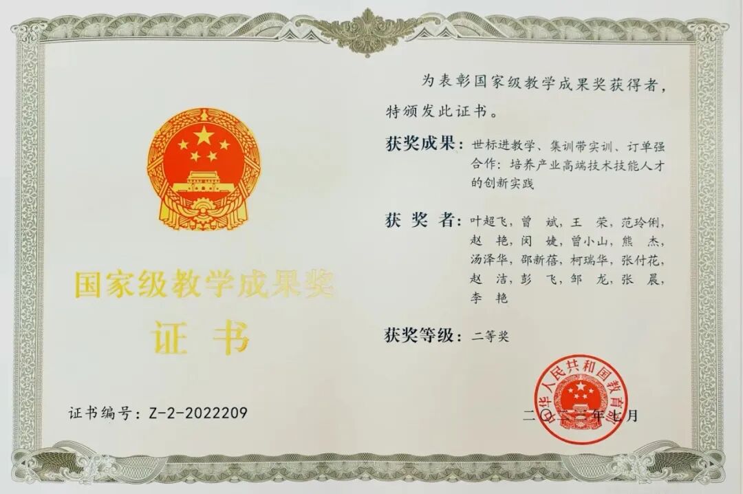 荣获国家教学成果二等奖3项,省级教学成果特等奖1项、一等奖12项,二等奖33项。建成国家级专业教学资源库1个,省级专业教学资源库8个;国家在线精品课程2门,国家精品资源共享课1门,省级在线精品课程57门,省级一流核心课程4门,省级课程思政示范课6门;国家规划教材10部,行业规划教材15部。立项世界技能大赛中国集训基地1个、省级集训基地6个,国家级协同创新中心1个,国家级生产性实训基地1个,获批江西省高职院校首个省级工程研究中心。