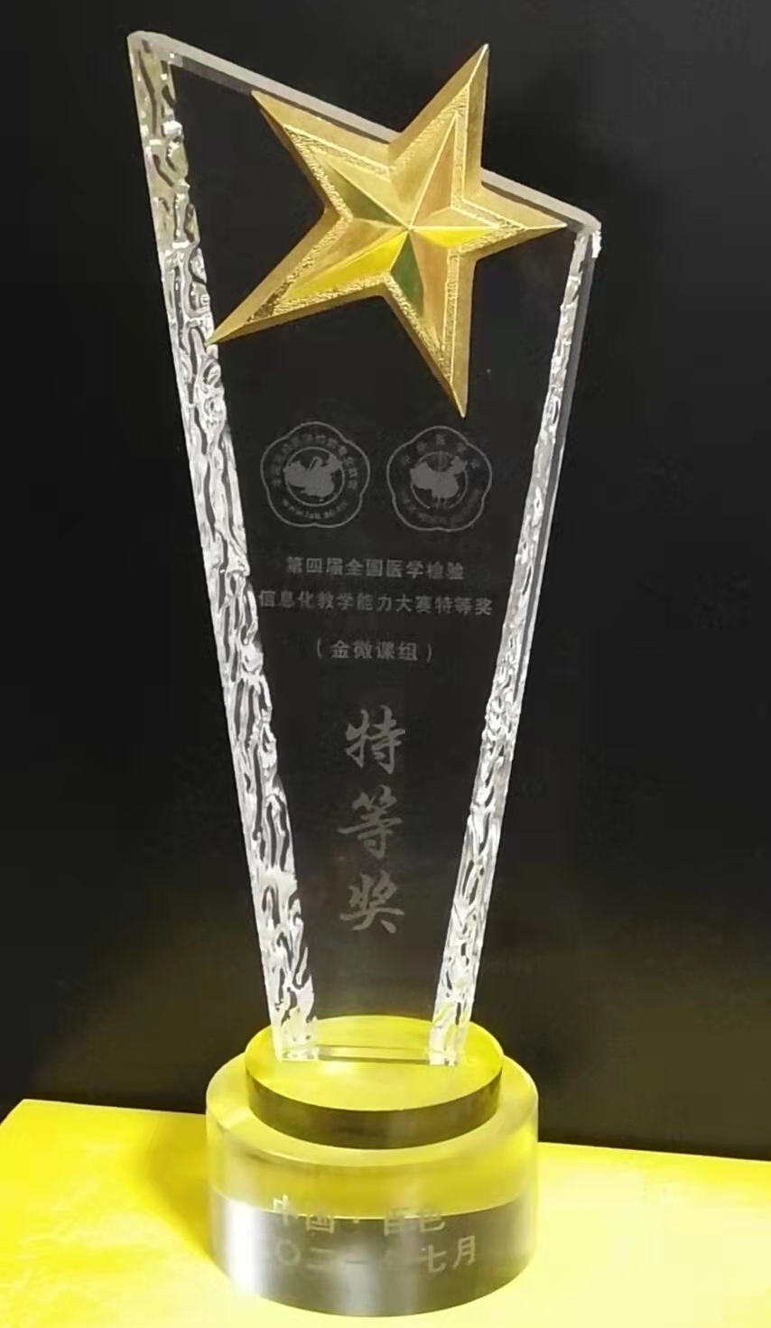 2014-2017连续四年获得全国检验技能竞赛团体二等奖,2018年获全国检验技能竞赛团体一等奖,2019年获全国检验技能竞赛团体三等奖,累计获得全国检验技能竞赛个人综合一等奖5人、二等奖11人、三等奖15人、优胜奖5人。2019年全国职业院校个人单项一等奖1人、二等奖2人、三等奖3人、优胜奖1人。2021年获得第五届医学检验大学生在线形态大赛中,一等奖1人、二等奖1人。教师团队获得微课比赛特等奖。