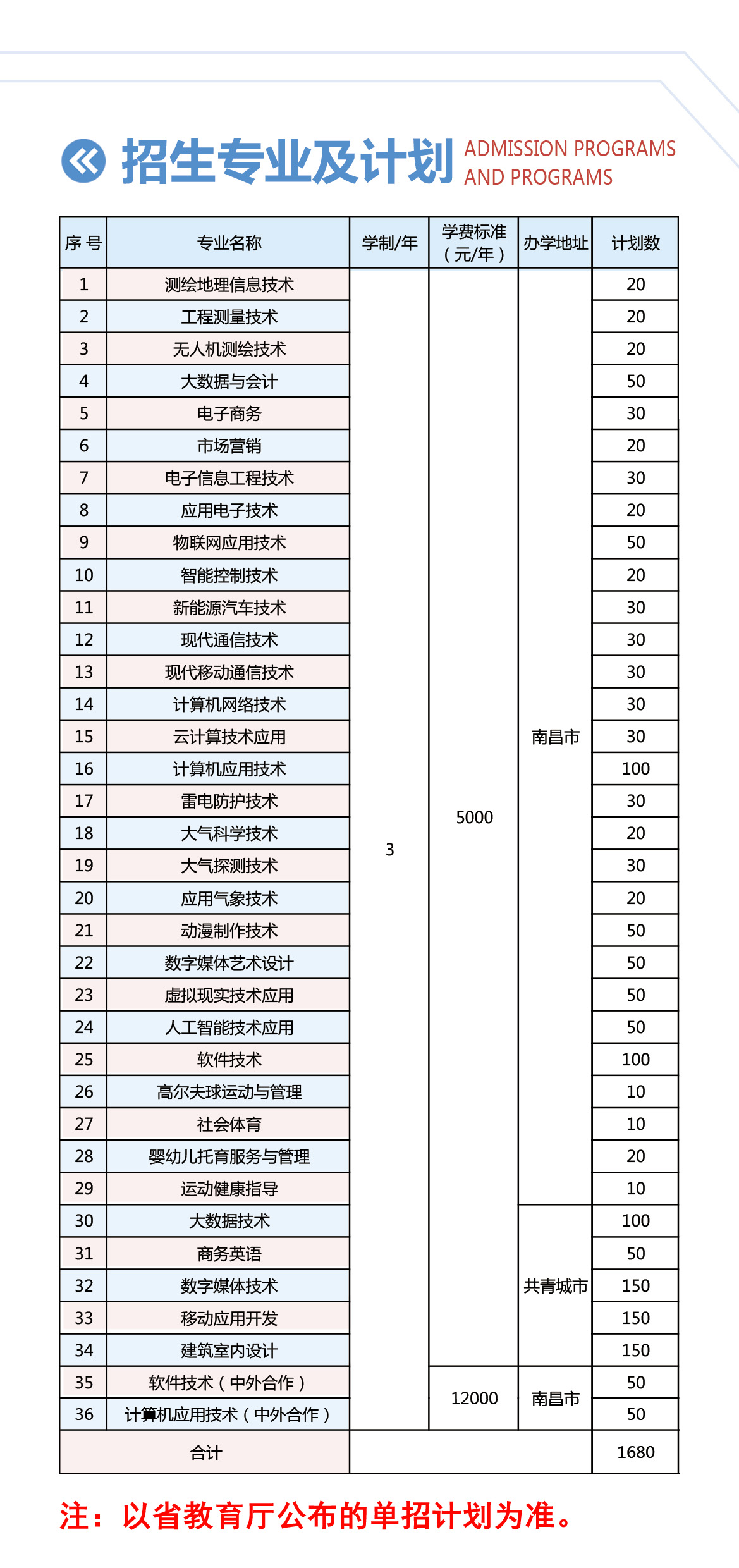 江西信息应用职业技术学院2023年单招招生专业及计划