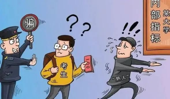 不法分子对考生家长谎称某高校的名额没能招满,通过花钱“打点”可让考生获得补录名额,以此骗取考生家长钱财。还有一些骗局中,骗子也会谎称有特殊关系,可以购买“内部指标”“计划外指标”。