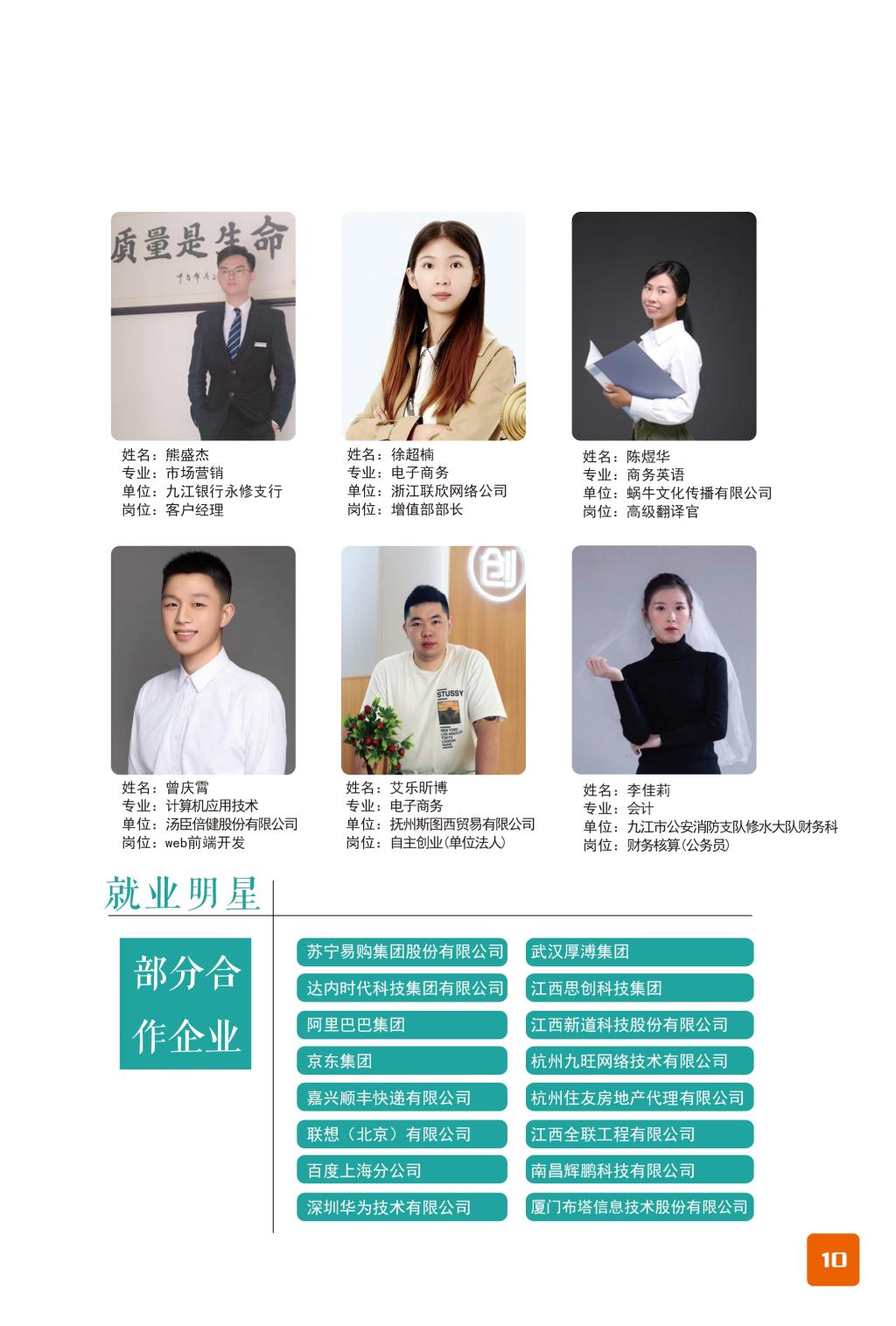 学校与南昌轨道交通集团、厦门航空有限公司、昌北国际机场、江西师大附属幼儿园、小苹果教育集团、海尔集团等100多家知名企业单位建立了长期、深度的校企合作关系,共建共育培养高质量的区域经济和经济社会发展紧缺人才。
