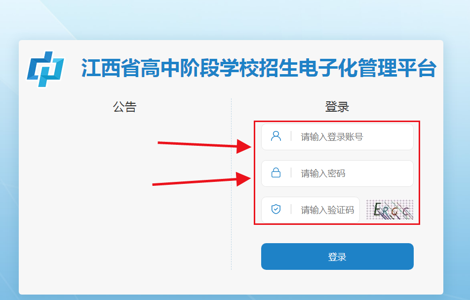 考生本人须登录江西省教育考试院网站(http://www.jxeea.cn),点击“中考学考”栏目,再点击“高中阶段招生电子化管理平台”按钮,进入“江西省高中阶段学校招生电子化管理平台”(以下简称“管理平台”)进行志愿填报。