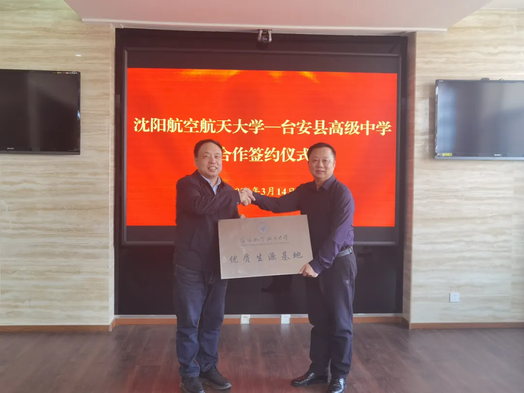 为促进高校教育与高中教育进一步走向融合,探索共同培养机制,优化生源结构。2024年3月14日,鞍山市台安县高级中学一行到校举行共建“优质生源基地”签约和授牌仪式,党委书记范振伟、副校长孙延鹏等参加仪式。会议由航空宇航学院党委副书记刘筱鸥主持。