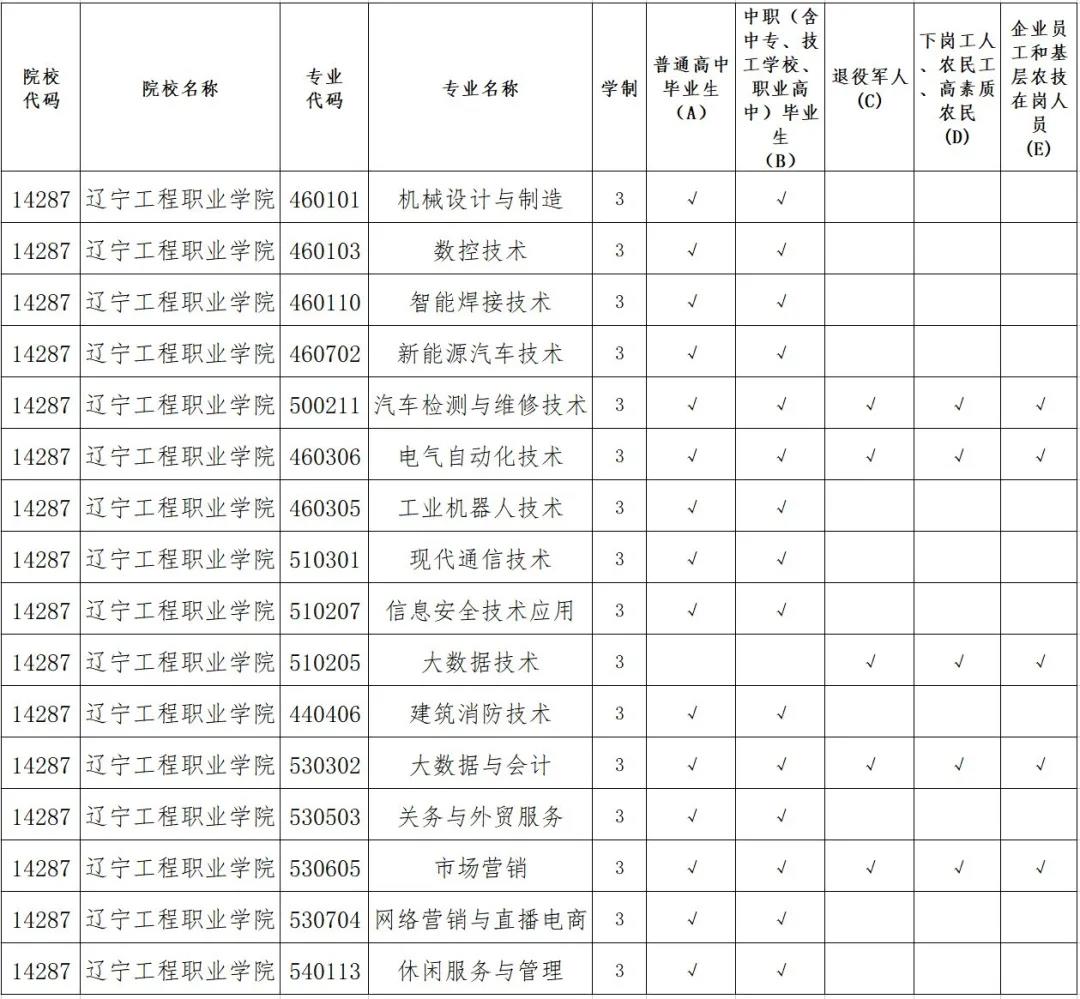 1.符合辽宁省统一高考报名条件的普通高中生、中职(含中专、技工学校、职业高中)学生、退役军人、下岗失业人员、农民工、高素质农民、企业在岗职工和基层农技人员等均可报考。