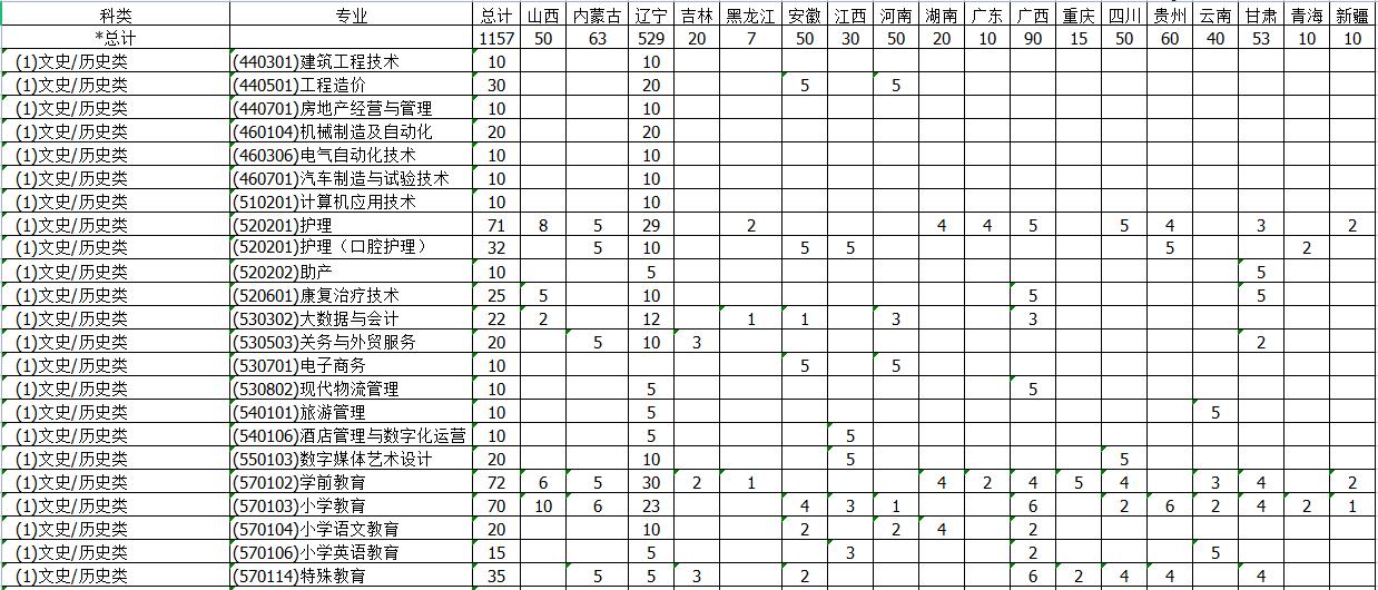2021营口职业技术学院普通高考招生计划