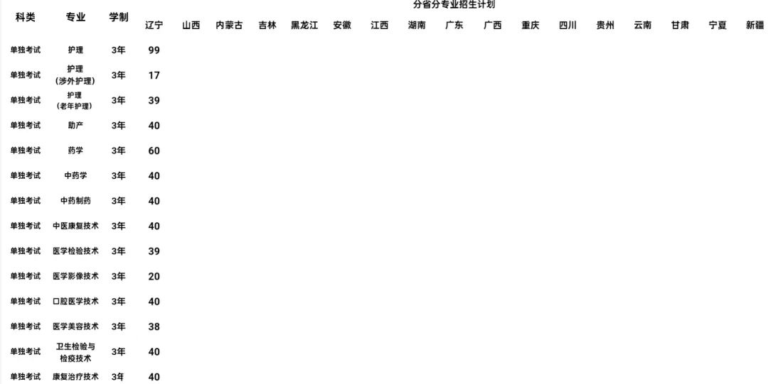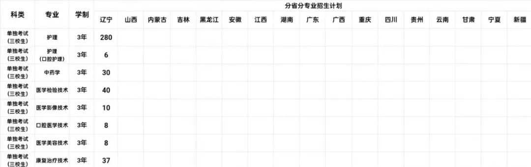 注:学院招生计划按照辽宁省教育厅核准的分省分专业招生计划执行。
