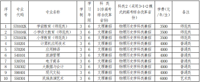 1)我校学前教育(师范类)、小学语文教育(师范类)、小学教育(师范类)、计算机应用技术、应用韩语、旅游管理、电子商务、大数据与会计、现代文秘专业在高职(专科)批,均实行平行志愿投档录取模式;民族表演艺术专业在艺术类高职(专科)批第一阶段,实行平行志愿投档录取模式。