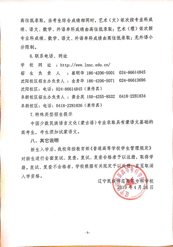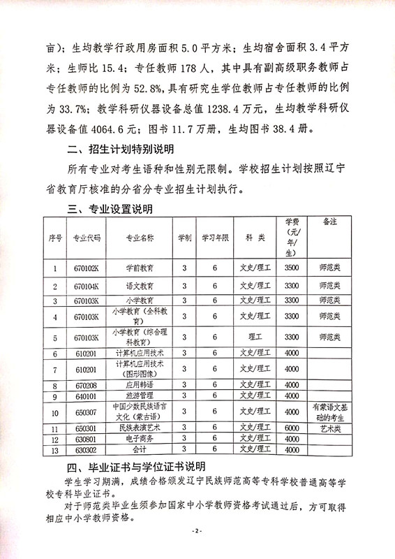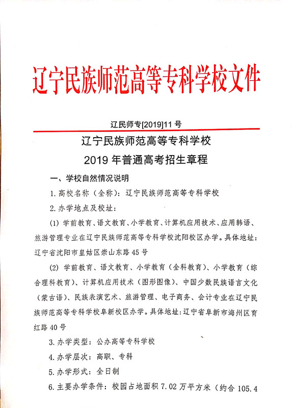 辽宁民族师范高等专科学校2019年普通高考招生简章