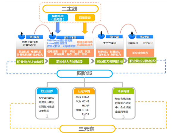 校企合作是本专业鲜明的办学特色,也是人才培养全过程所依托的坚实平台。专业先后与锐捷网络股份有限公司,思科系统(中国)网络技术有限公司、神州数码科技有限公司、华为技术有限公司、华三通信技术有限公司、360科技有限公司等多家国内外知名企业以及辽宁金盛科技有限公司、沈阳金盛科技有限公司、大连诺达科技有限公司等多家省内知名企业开展了广泛的校企合作,成立网络学院,企业生产和管理的阶段性需要,确定核心课程和课程内容,培养满足企业需要的合格人才。