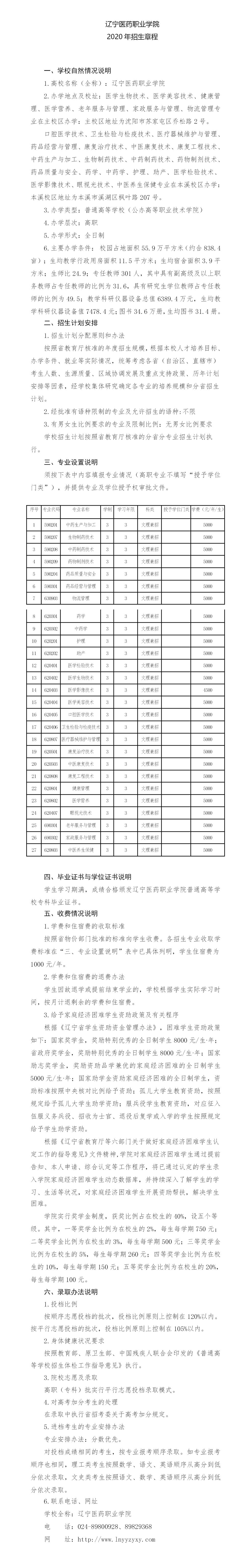 辽宁医药职业学院2020年招生章程