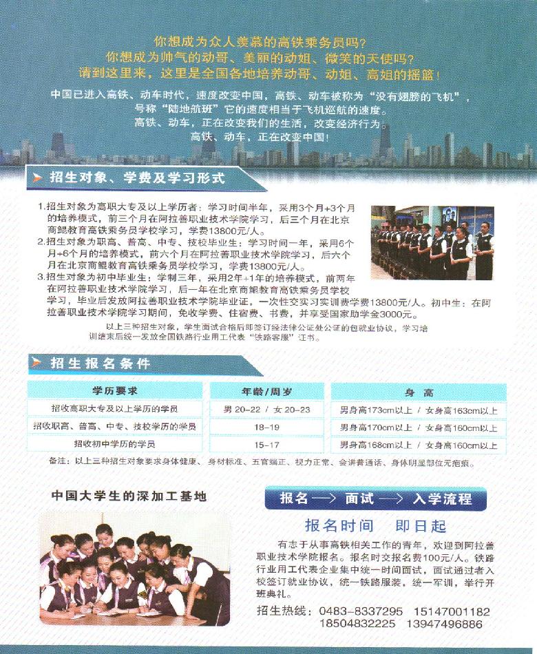 2016高铁乘务员招生简章