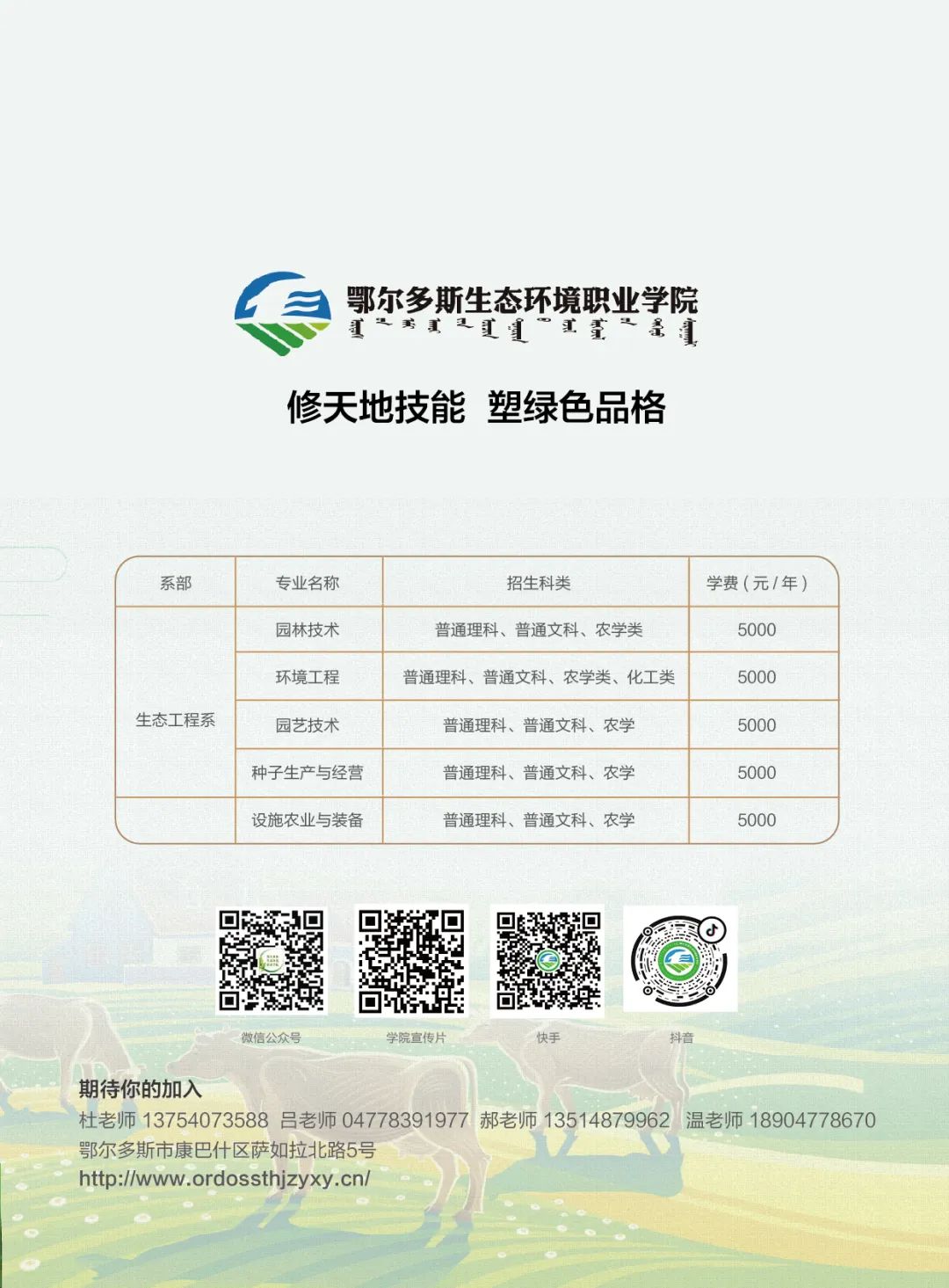 鄂尔多斯生态环境职业学院生态工程系2023年招生简章