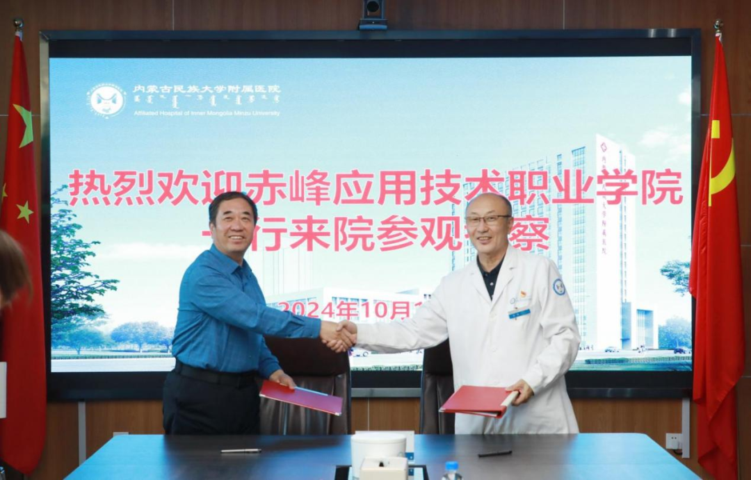 10月10日下午,张书记一行来到内蒙古民族大学附属医院,进行院校合作签约。附属医院院长张天资、副院长刘锁及相关科室主任参加签约仪式。院校双方就实习基地建设、实习生培养与管理等方面进行了深入交流,并签署了合作协议。此次签约标志着学院与附属医院在医学教育、实习实训等领域的合作迈出了坚实的一步。这将为护理、眼视光技术专业及医疗器械维护相关专业的学生提供更好的实践平台。