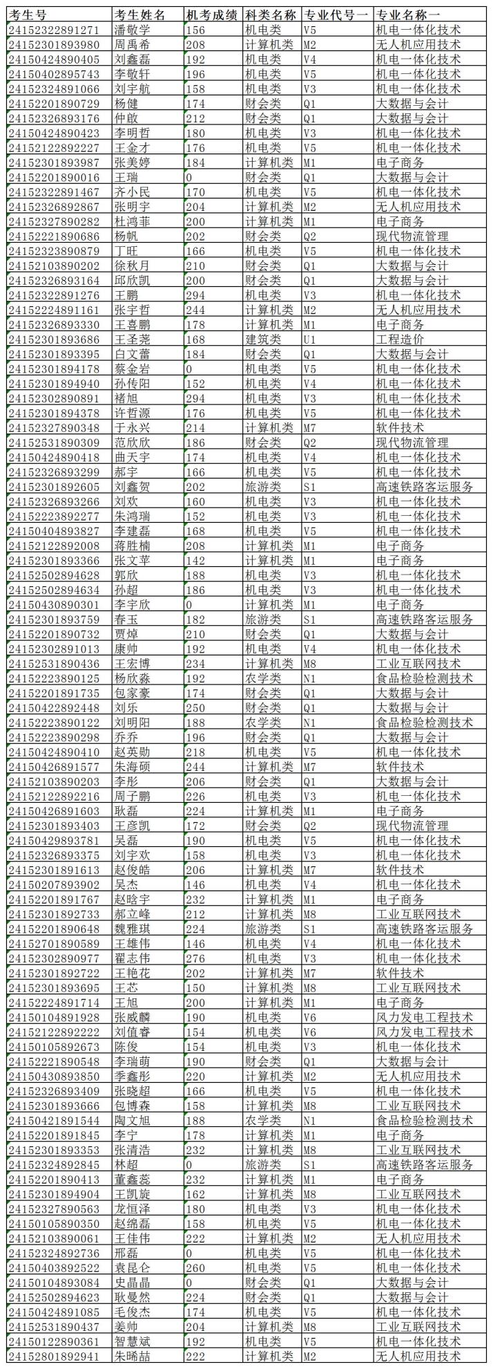 通辽职业学院2024年第二次单招成绩公示(第三场)