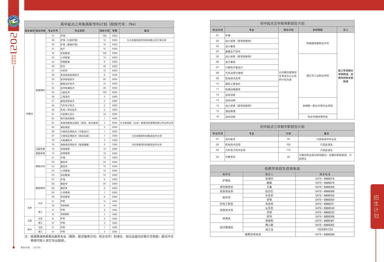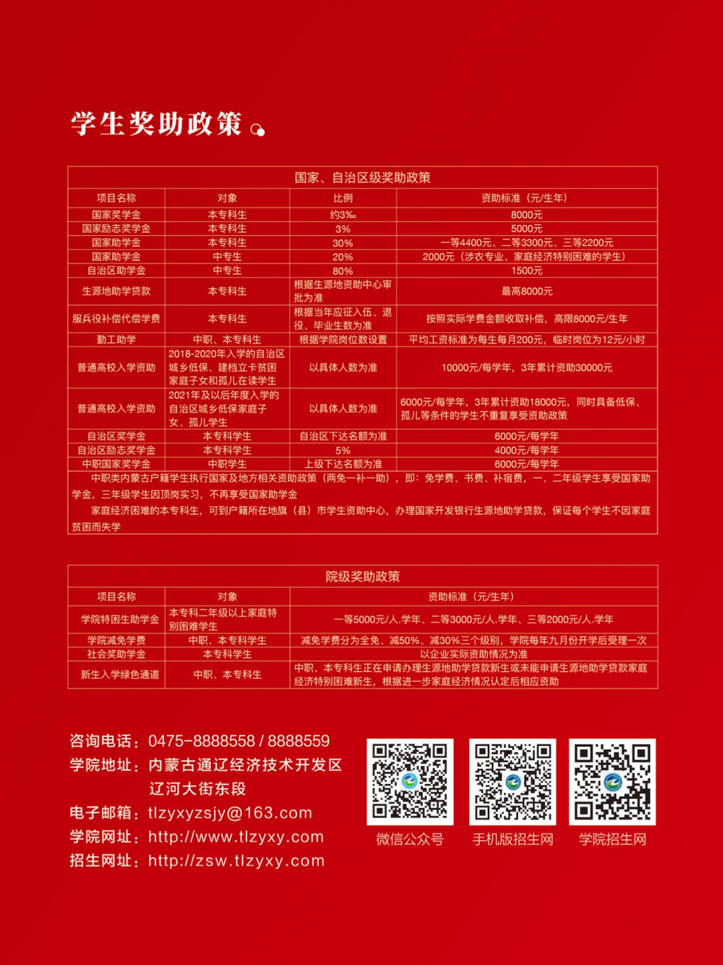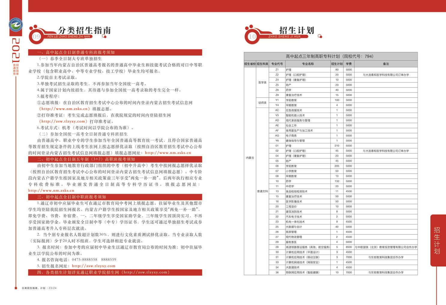 通辽职业学院2021年普通教育报考指南(高中起点全日制普通专科)