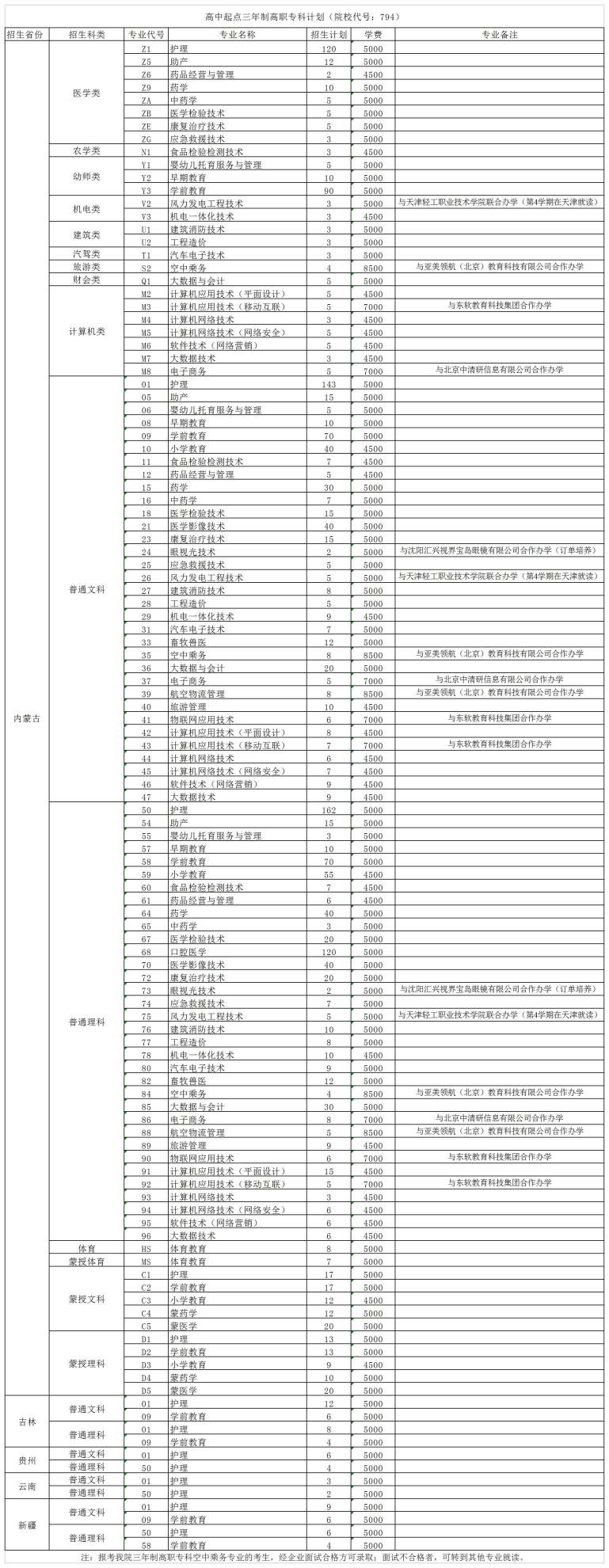 通辽职业学院2022年普通教育招生计划