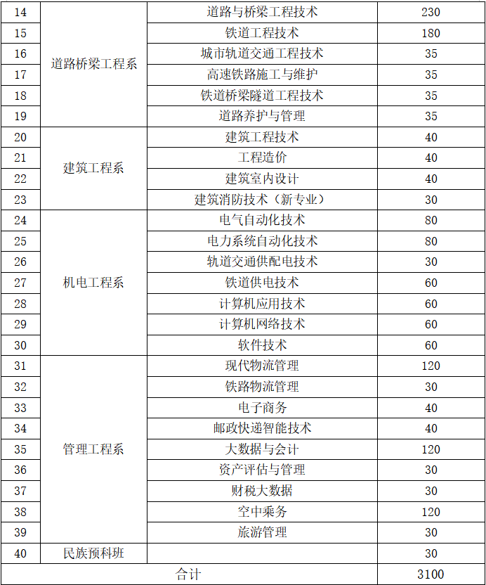 学院确立“大交通”“新交通”“智联网”专业建设理念,打造了汽车检测与维修技术、城市轨道交通运营管理、道路桥梁工程技术、建筑工程技术、电气自动化、物流管理和无人机应用技术7个特色专业群,招生专业总数达40个,其中教育部全国交通运输示范专业1个、自治区重点建设专业7个、自治区品牌专业7个,基本形成协调发展的现代化综合交通运输专业人才培育体系。