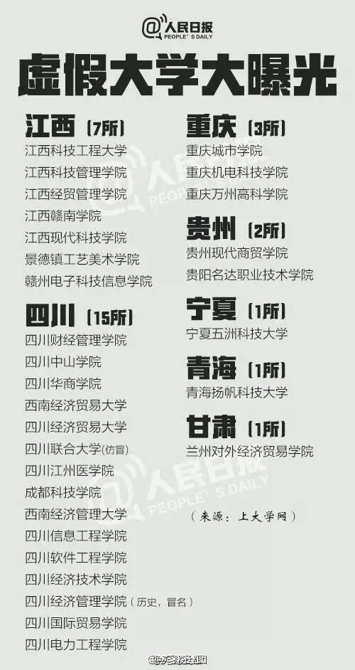 高考结束后,“虚假高校”也要开始作祟了。上大学网从2013年到2016年共曝光5批虚假大学名单,一些虚假学校被曝光多次仍换个域名继续存在。这些学校绝大部分仿冒正规高校名称,连学校简介也是抄袭拼凑而来。