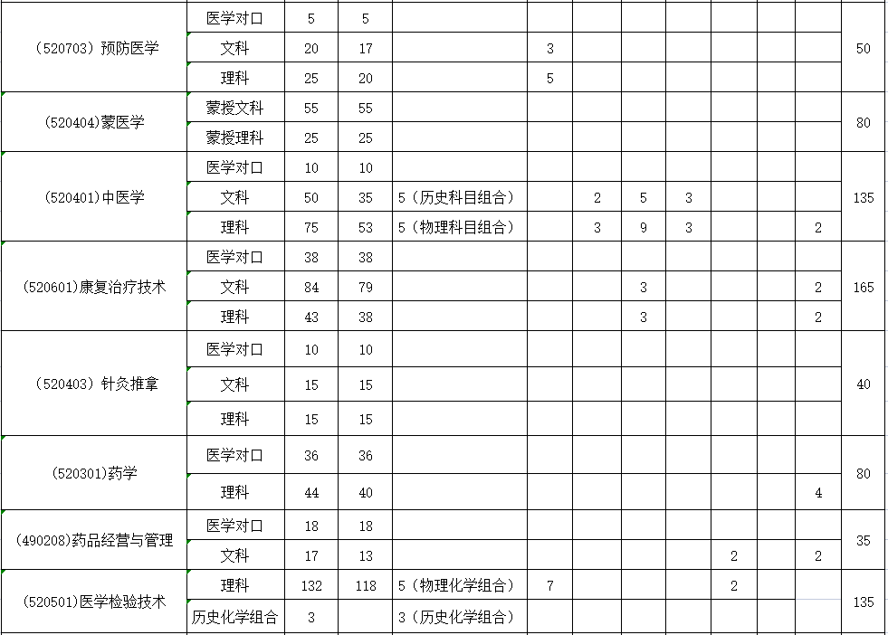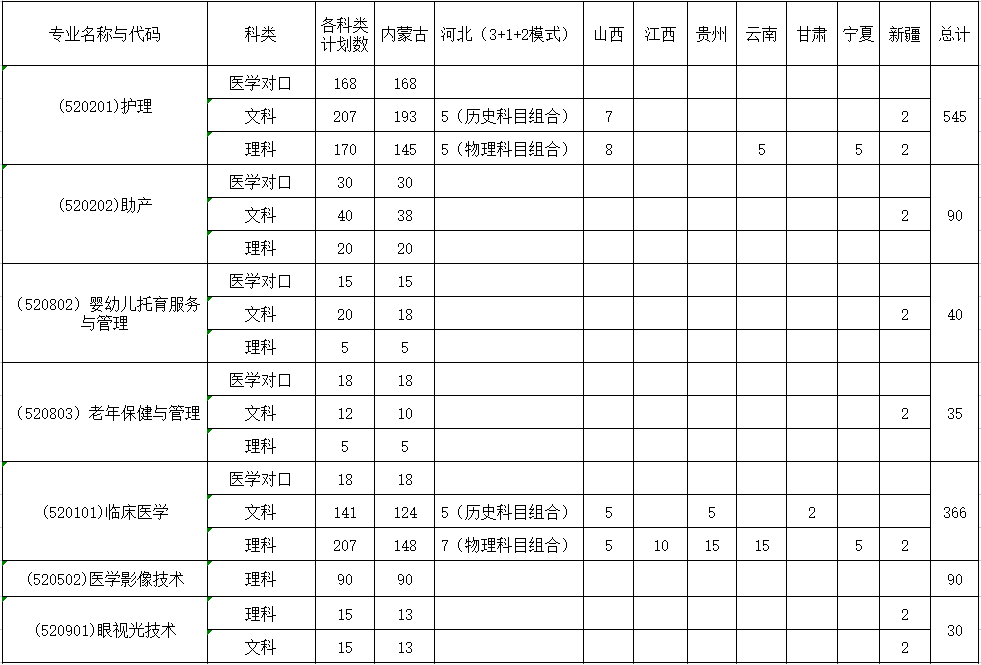 乌兰察布医学高等专科学校2022年招生计划