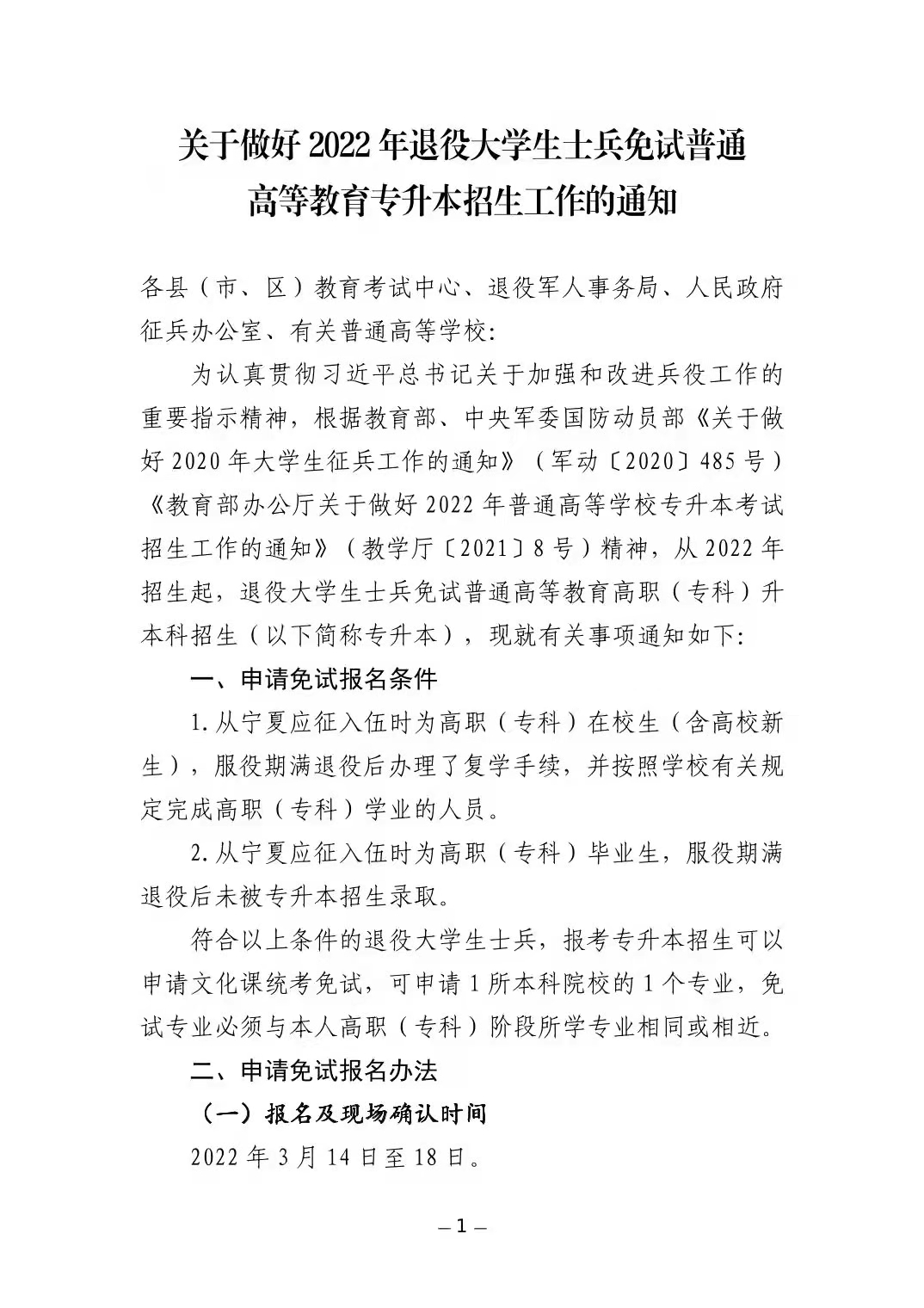 关于做好2022年退役大学生士兵免试普通高等教育专升本招生工作的通知