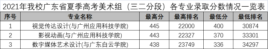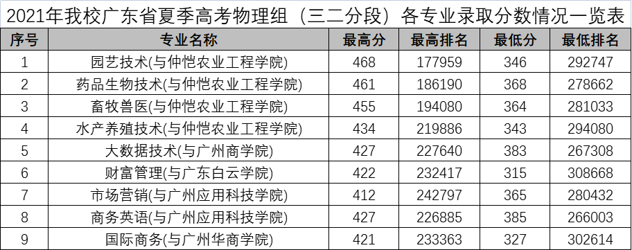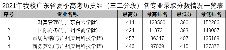 2021年我校三二分段专升本协同育人项目实验班各专业录取分数情况一览表