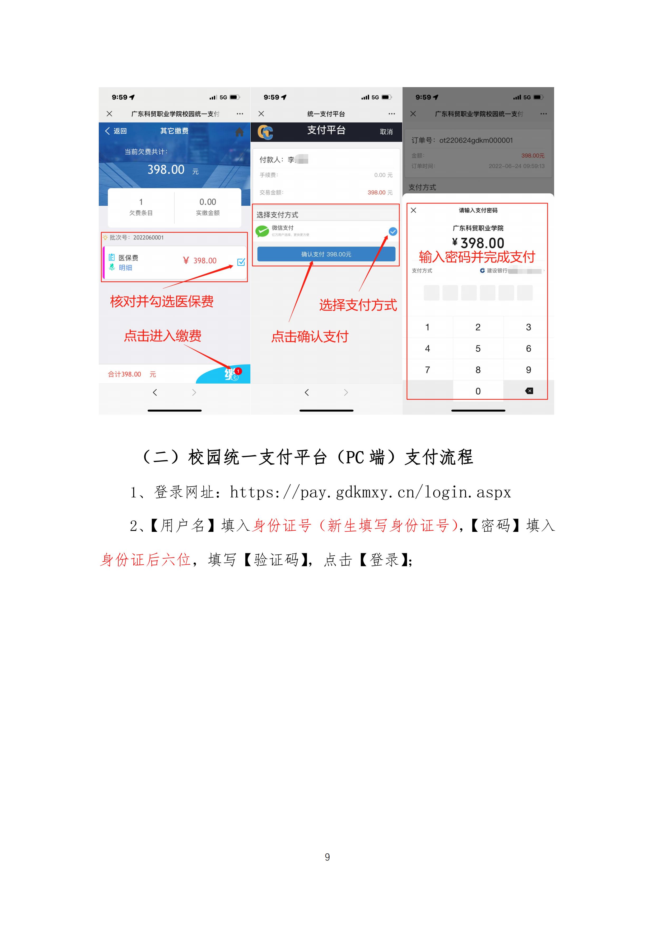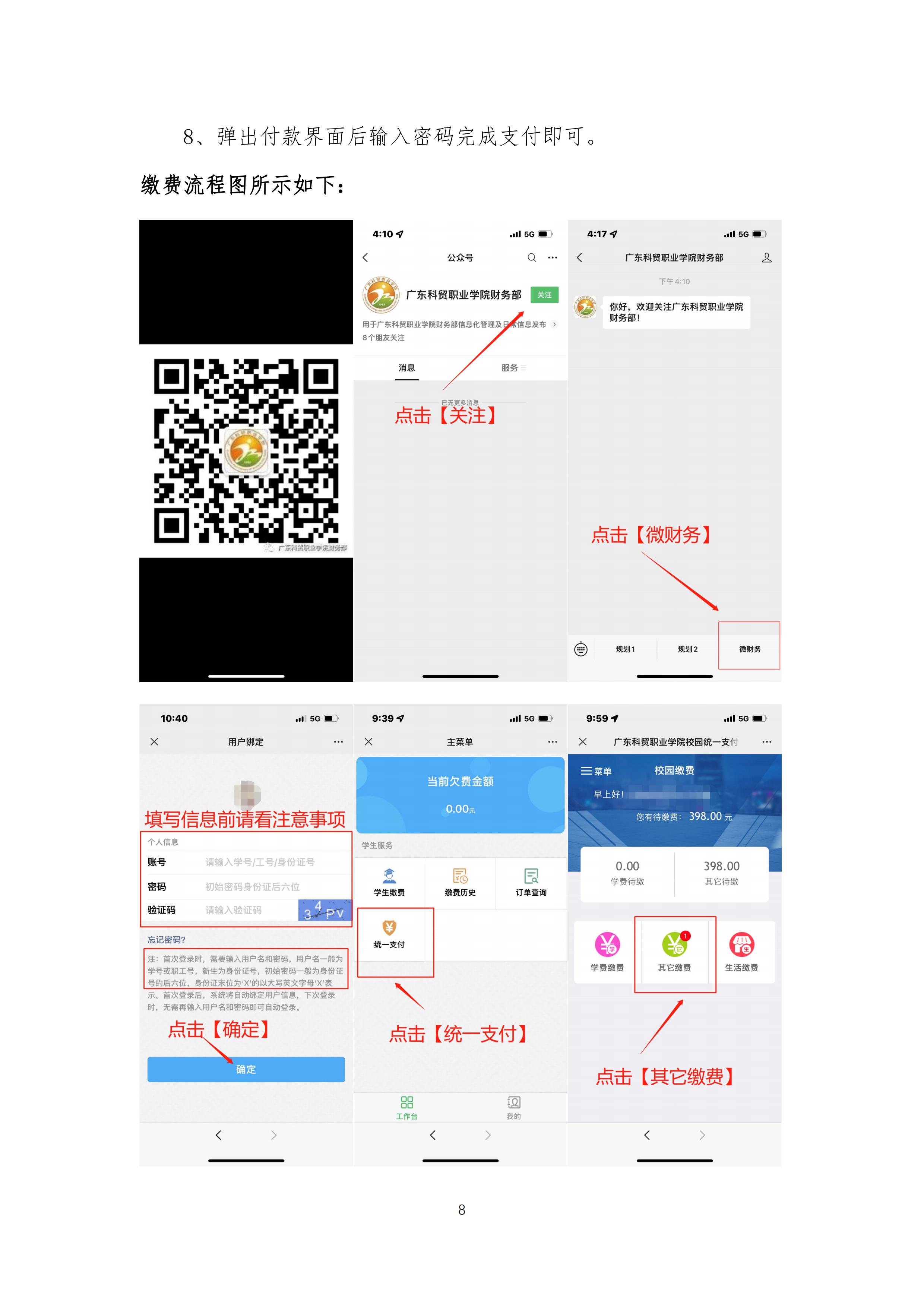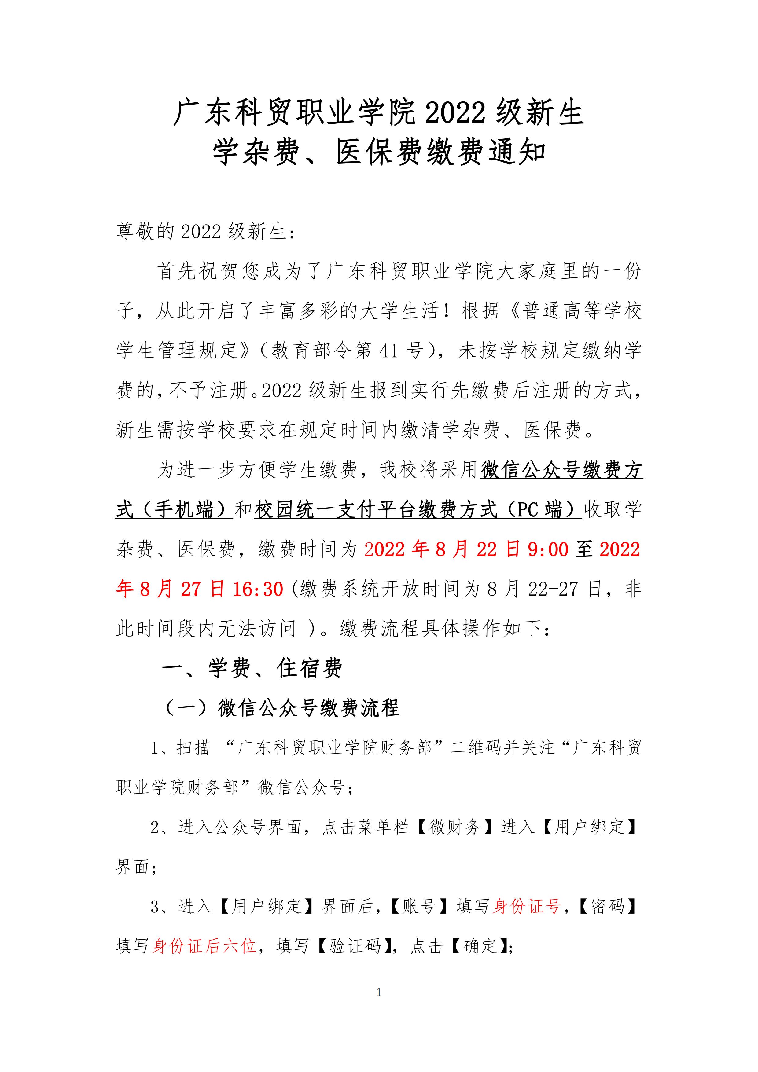 广东科贸职业学院2022级新生学杂费、医保费缴费通知(附微信支付流程)