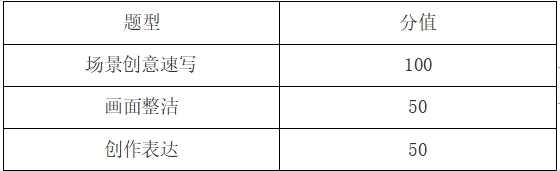 专业水平测试内容是场景创意速写,旨在测试考生对手绘技能的掌握程度,包括观察、构思、表现和创新等方面的能力。
