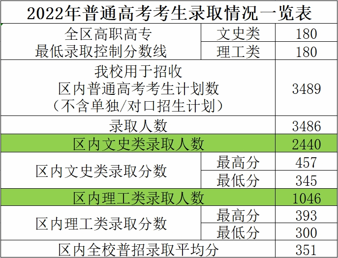 我校2022年普招录取情况表