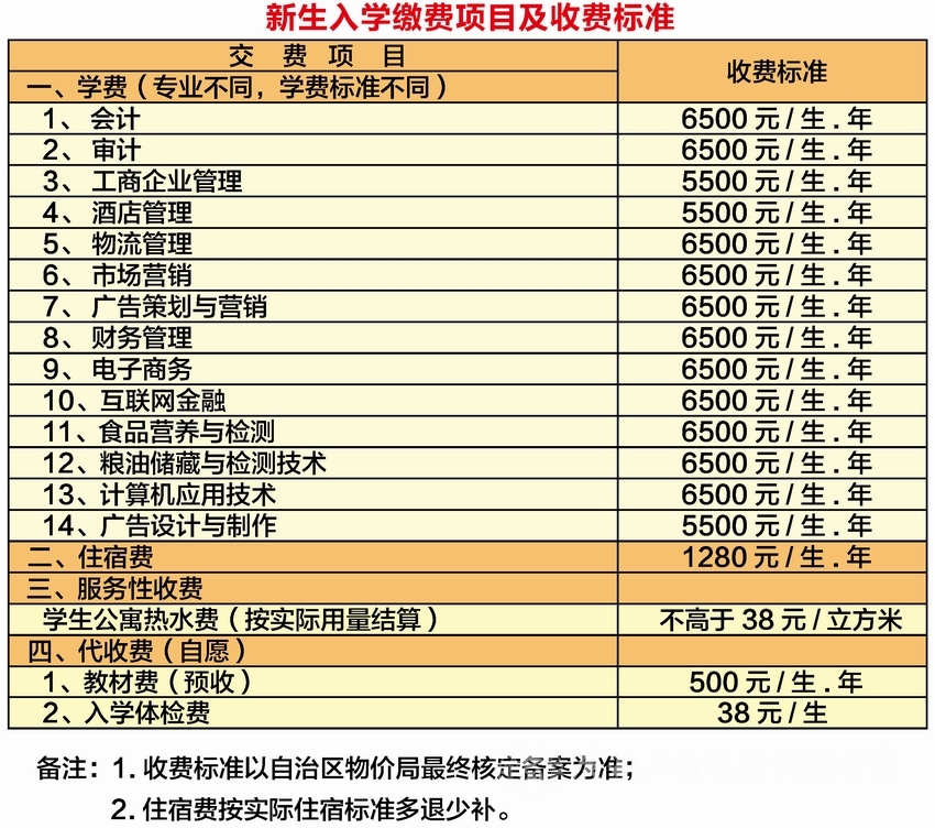 2018级新生入学交费项目及收费标准(鹏飞校区)
