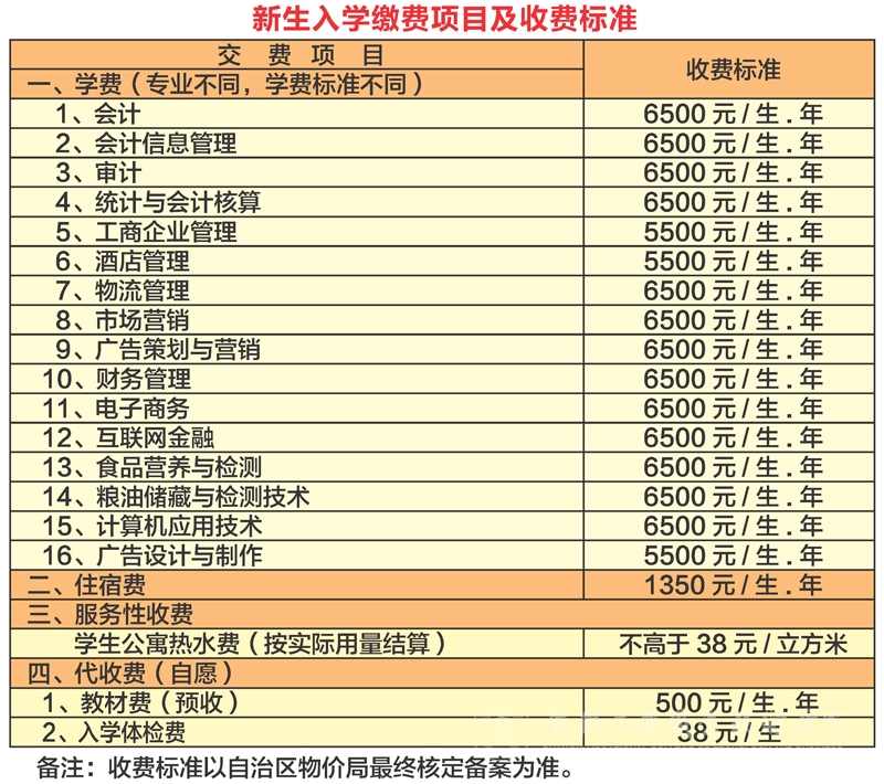 2017级新生入学交费项目及收费标准