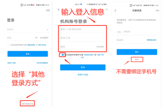 2.登录:按以下步骤,选择“其它方式登录”,输入登录信息。