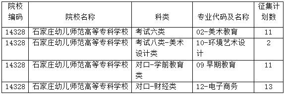 石家庄幼儿师范高等专科学校报志愿院校代码:14328