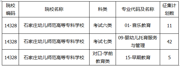 石家庄幼儿师范高等专科学校报志愿院校代码:14328