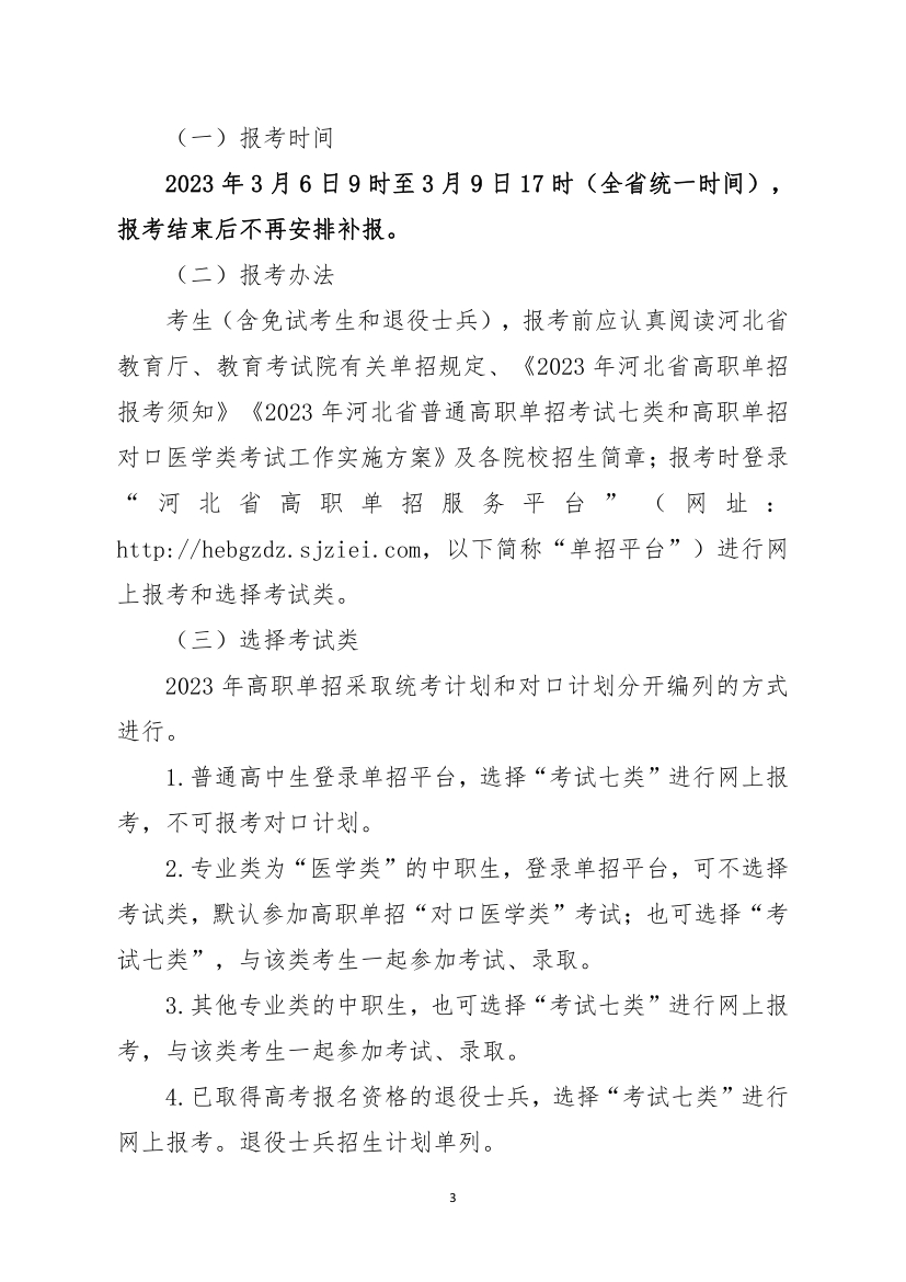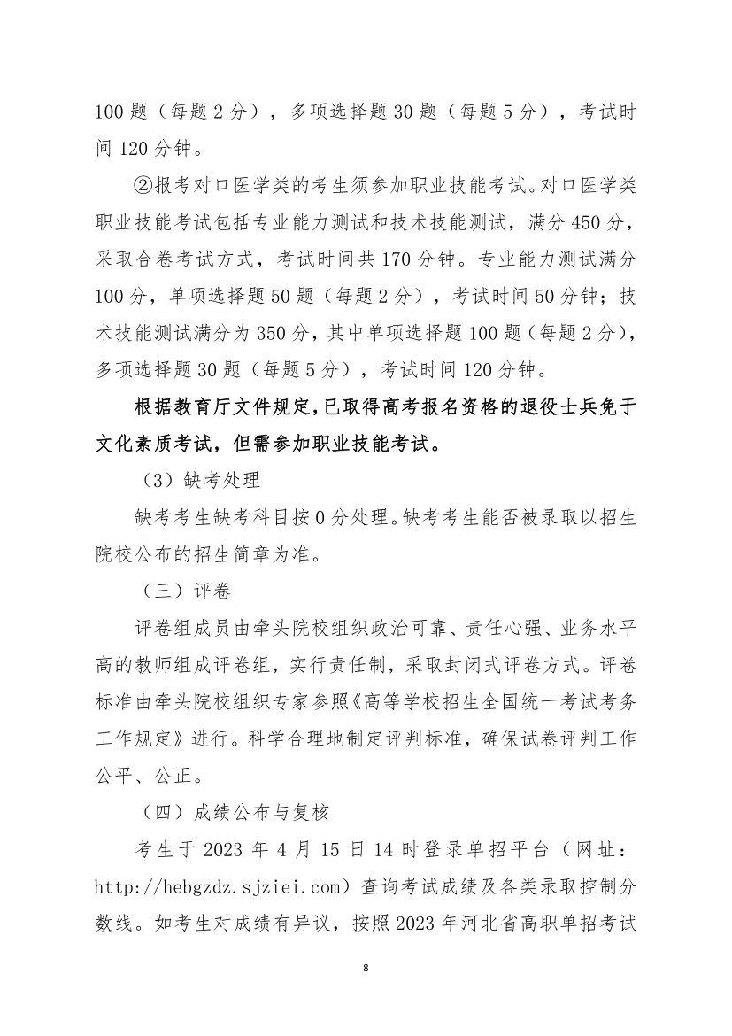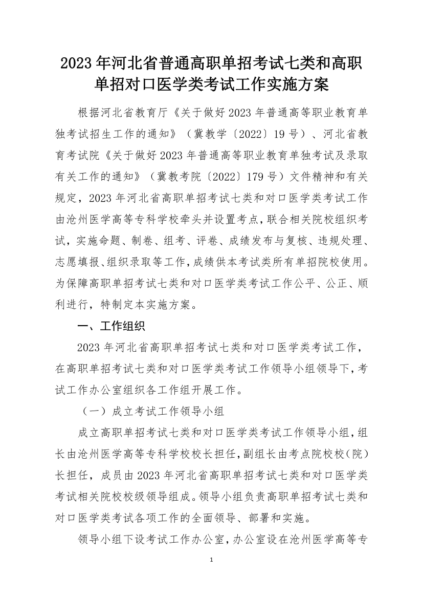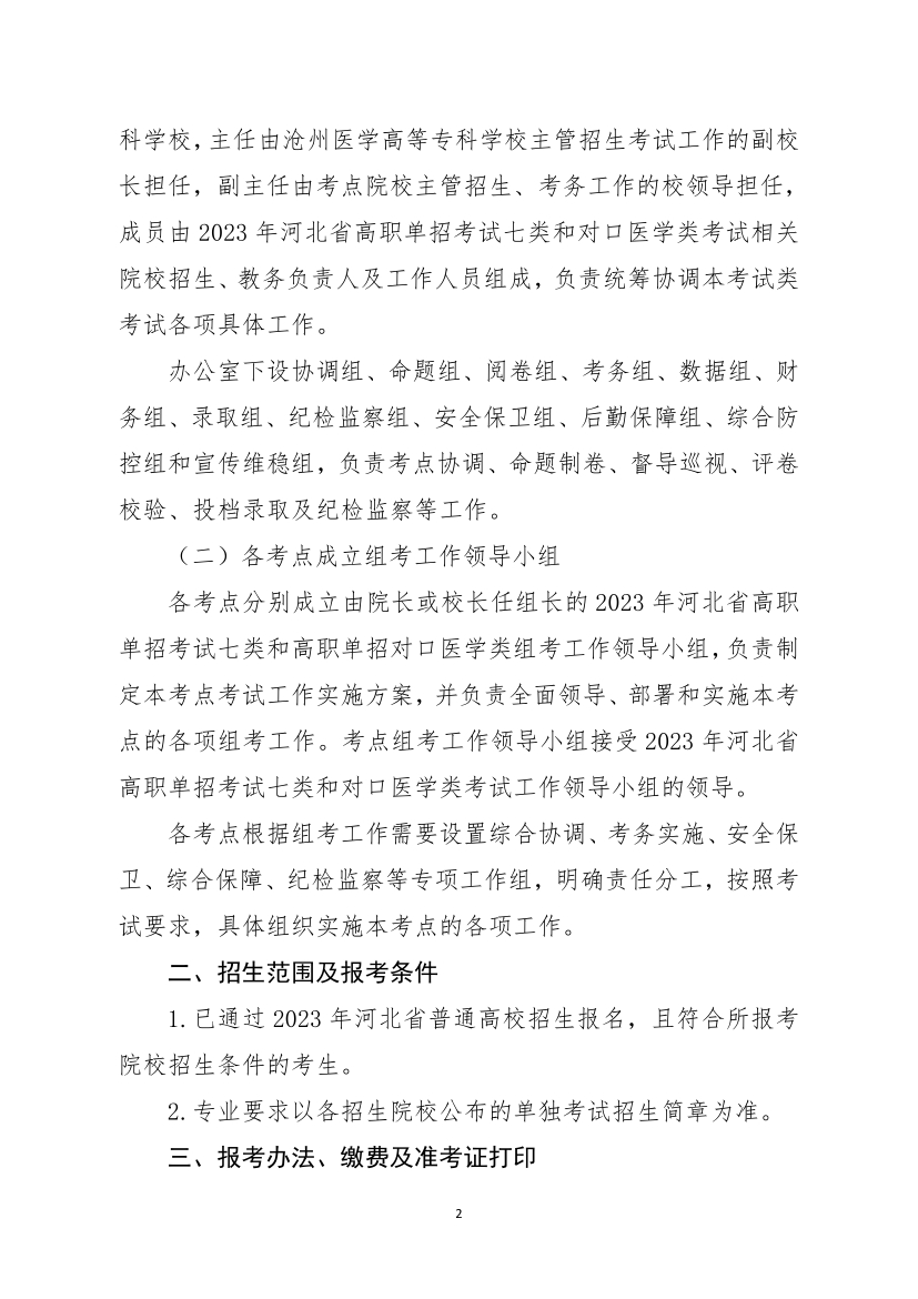 2023年河北省普通高职单招考试七类和高职单招对口医学类考试工作实施方案