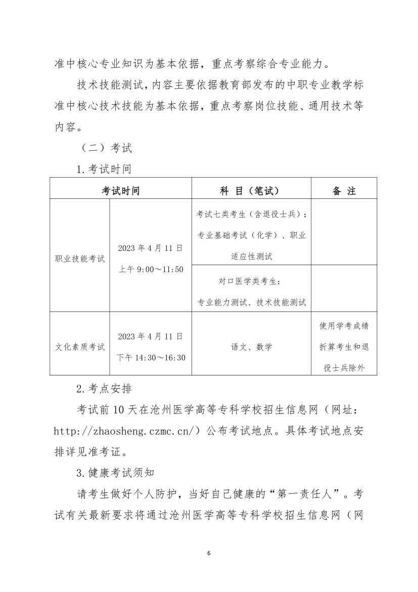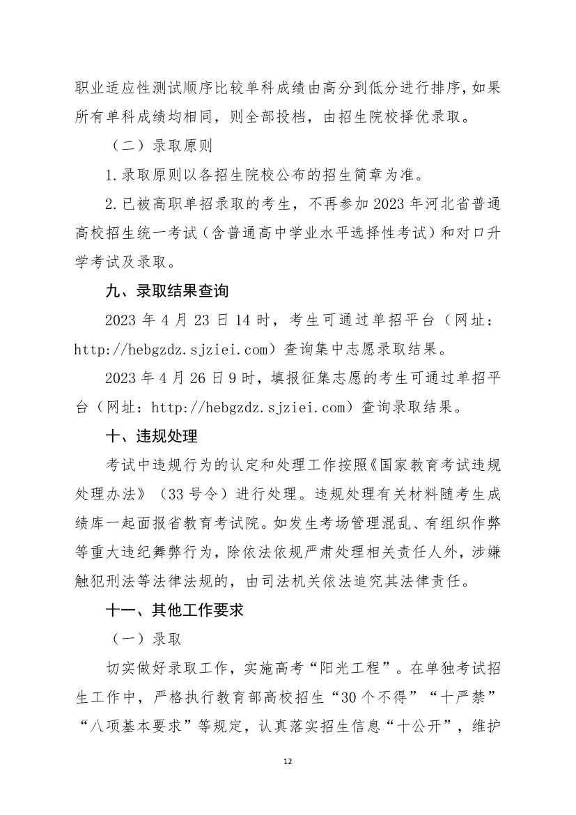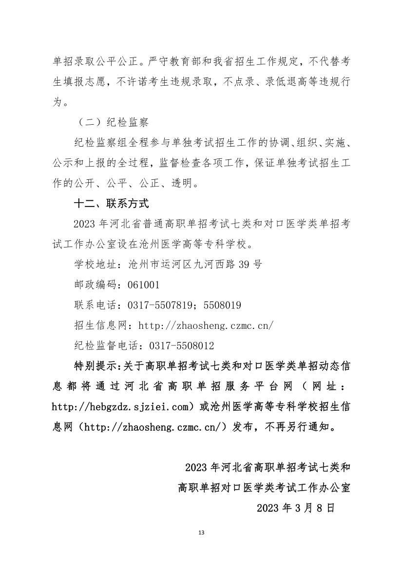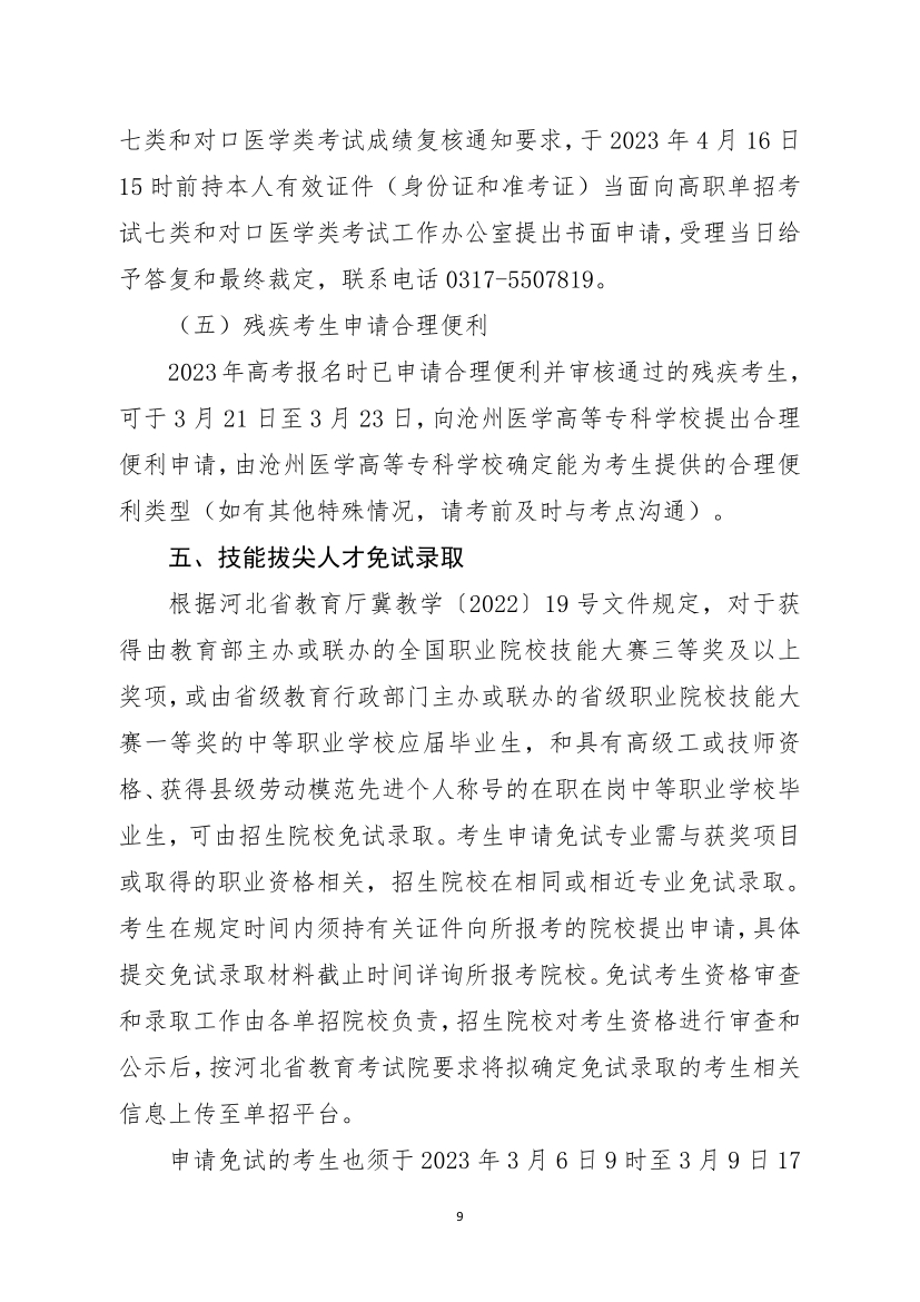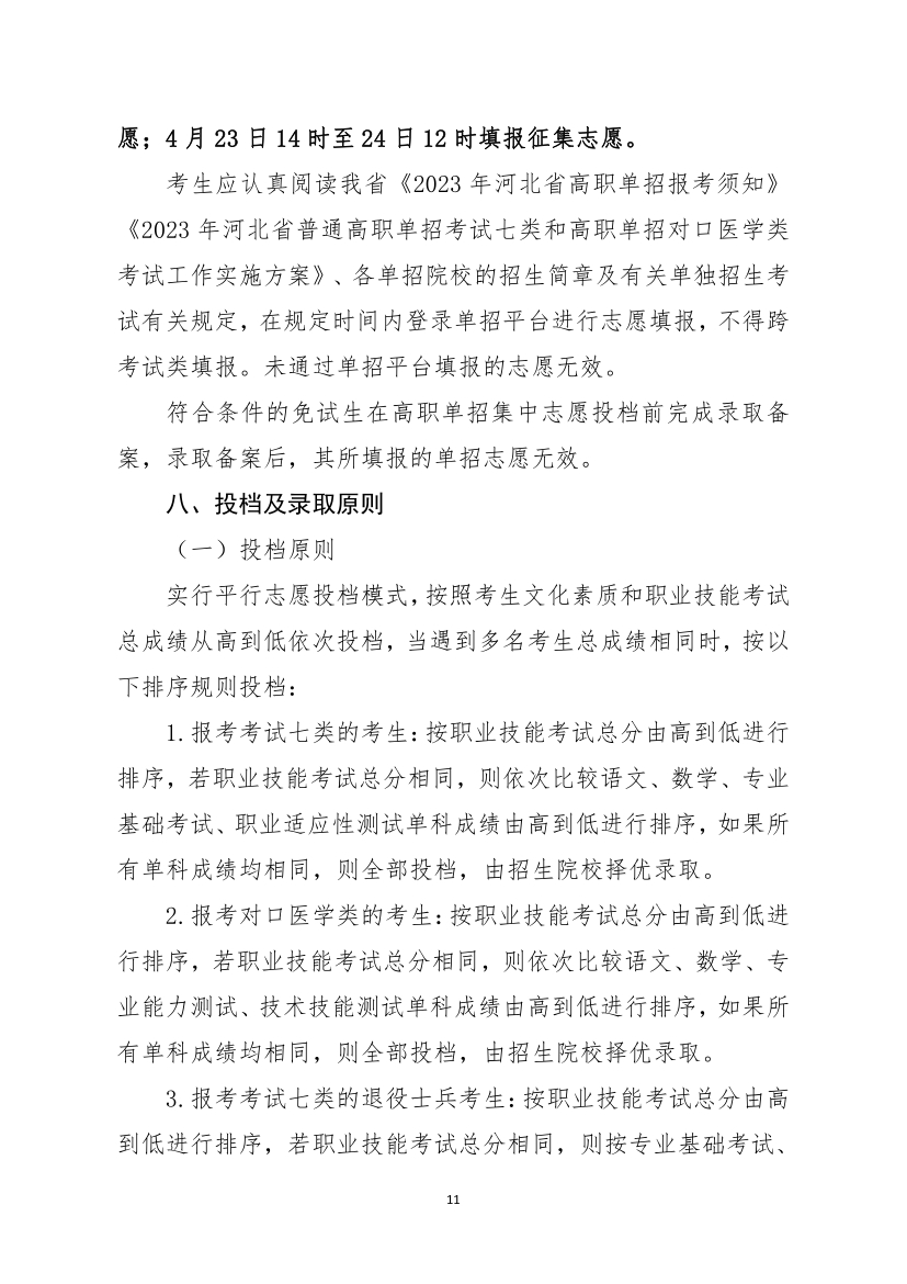 2023年河北省普通高职单招考试七类和高职单招对口医学类考试工作实施方案