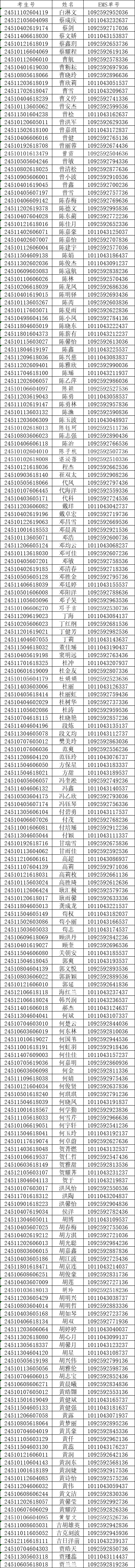 我校2024年对口高考录取工作已经结束。现将录取名单和EMS单号公布如下(按姓氏拼音排序),通知书于8月18日通过邮政EMS寄出。录取新生请于8月28日至29日到学校三星堆校区(四川省德阳市广汉市航天大道155号)报到入学。有任何疑问请拨打学校招生处电话:028-84809675、84809638、84809788。