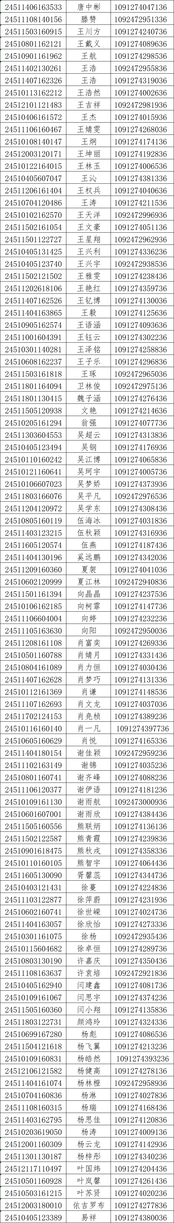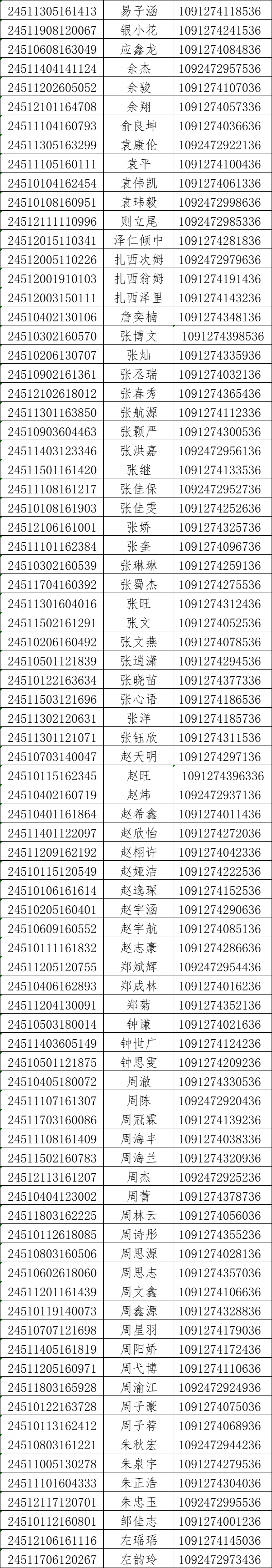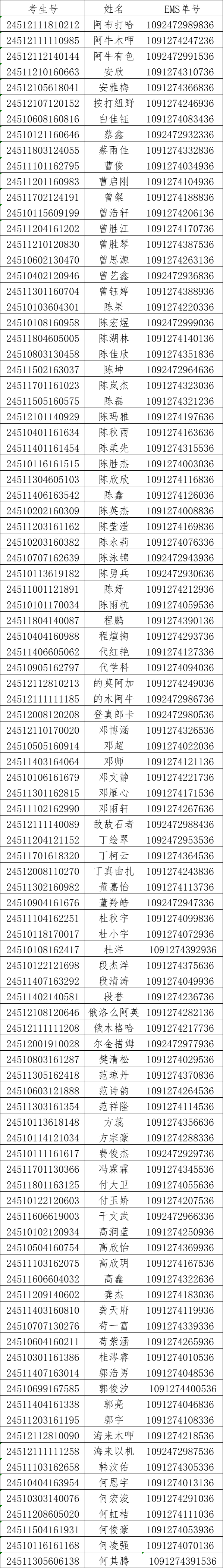 我校2024年普通专科补录录取工作已经结束,现将录取名单和EMS单号公布如下(按姓氏拼音排序),录取通知书已于9月28日通过邮政EMS寄出,录取新生请于10月8日到学校三星堆校区(广汉市航天大道155号)图书馆报到入学。有任何疑问请拨打学院招生处电话:028-84809675、84809638、84809788。