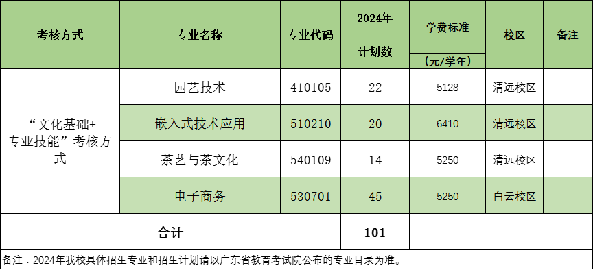 我校2024年自主招生面向中职招生计划一览表