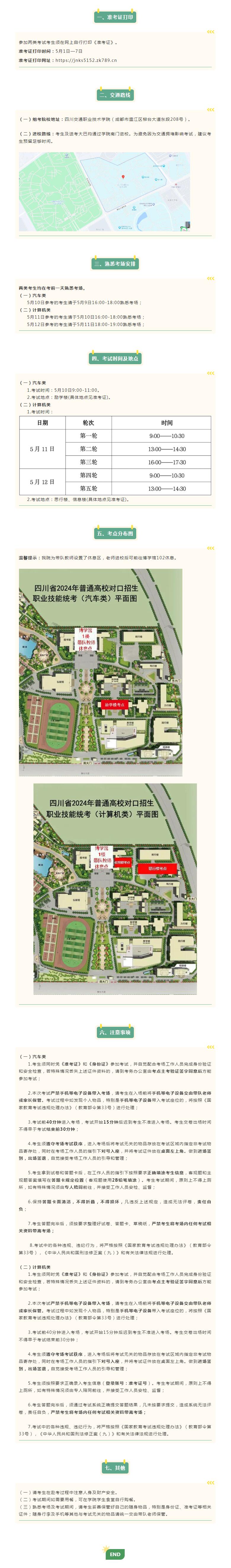 四川省2024年普通高校对口招生职业技能统考考试须知(汽车类、计算机类)