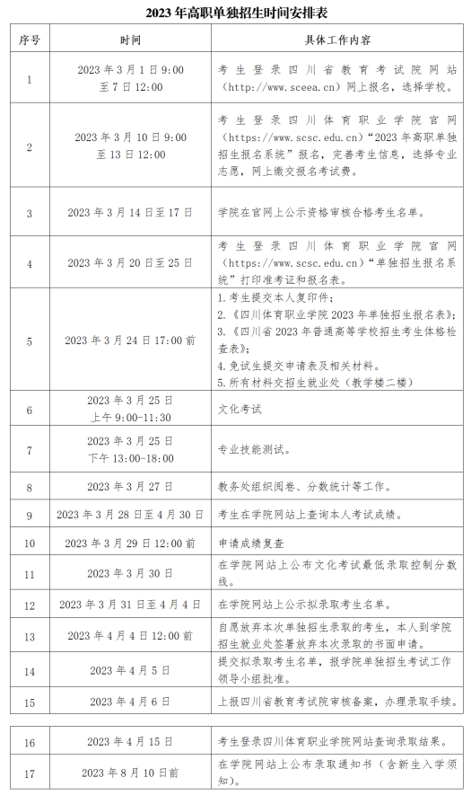 (2)《四川体育职业学院2023年单独招生报名表》、《四川省2023年普通高等学校招生考生体格检查表》。
